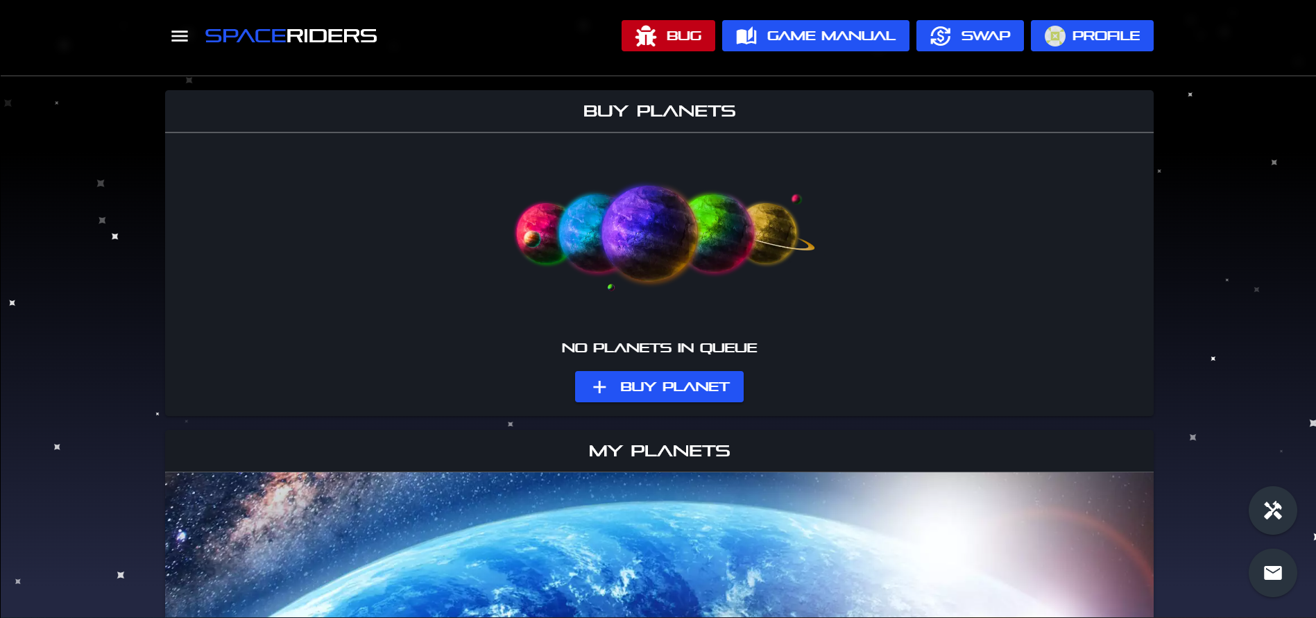 **Ahora puedes comprar tu primer** [planetas](https://spaceriders-spaceriders.gitbook.io/spaceriders-darkpaper/gameplay/planetas "mention").